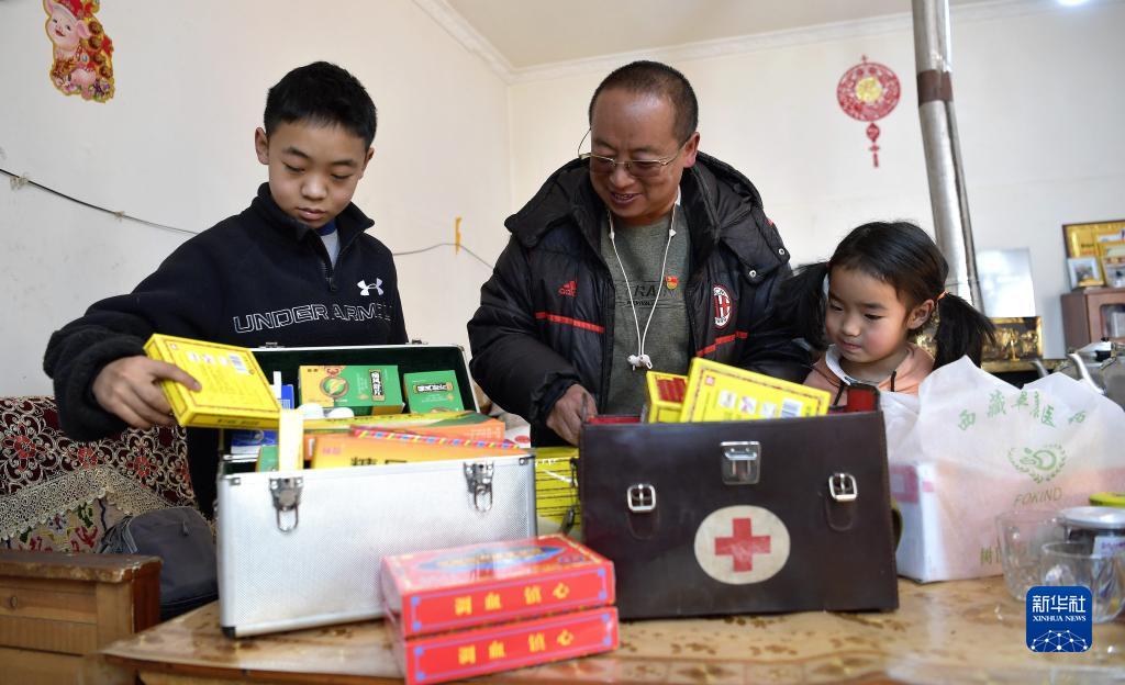 秋加(中)和他的孩子在整理药箱(1月14日摄)。新华社记者 张汝锋 摄