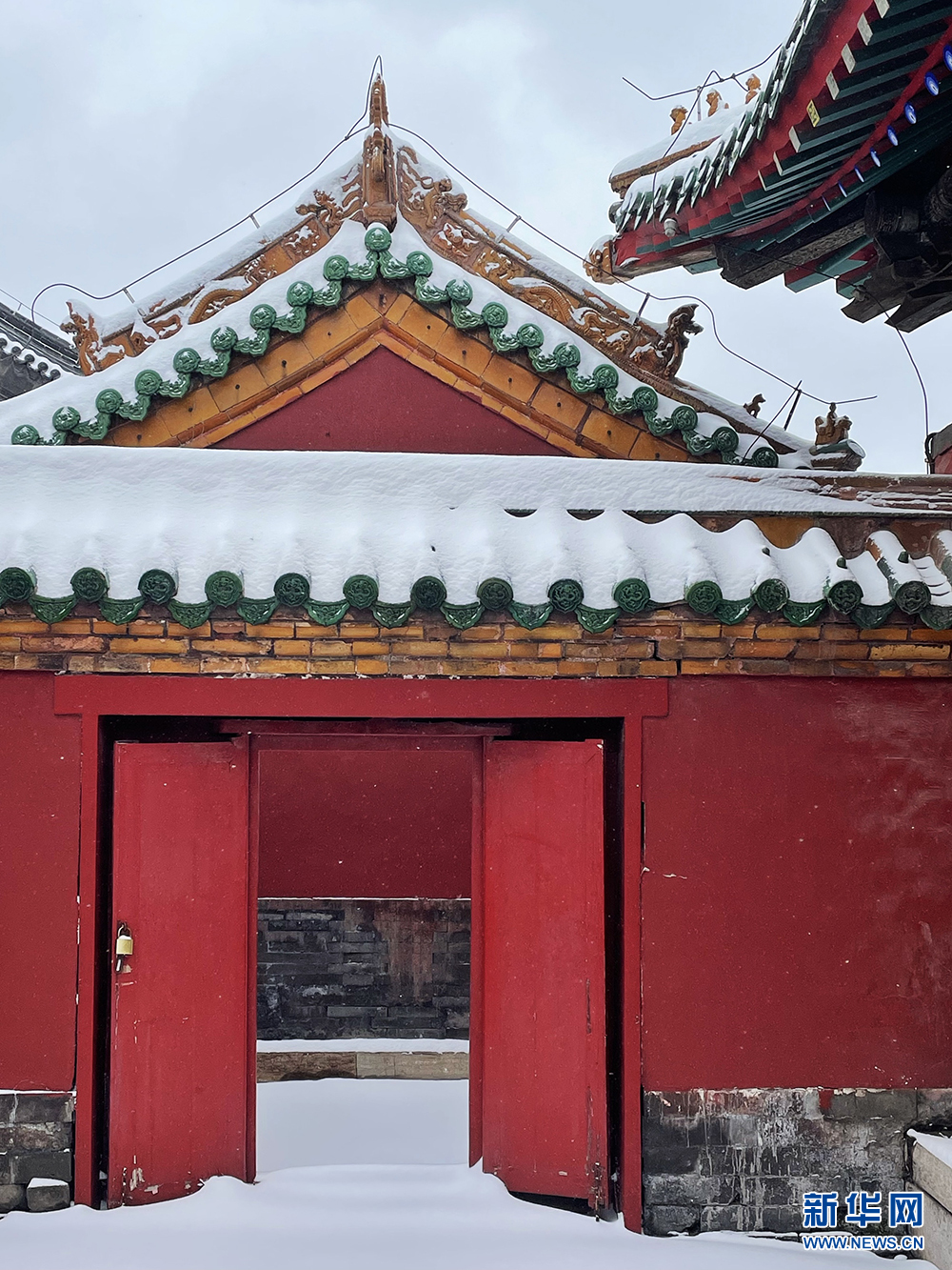 图为雪后,沈阳故宫的红墙绿瓦。新华网发