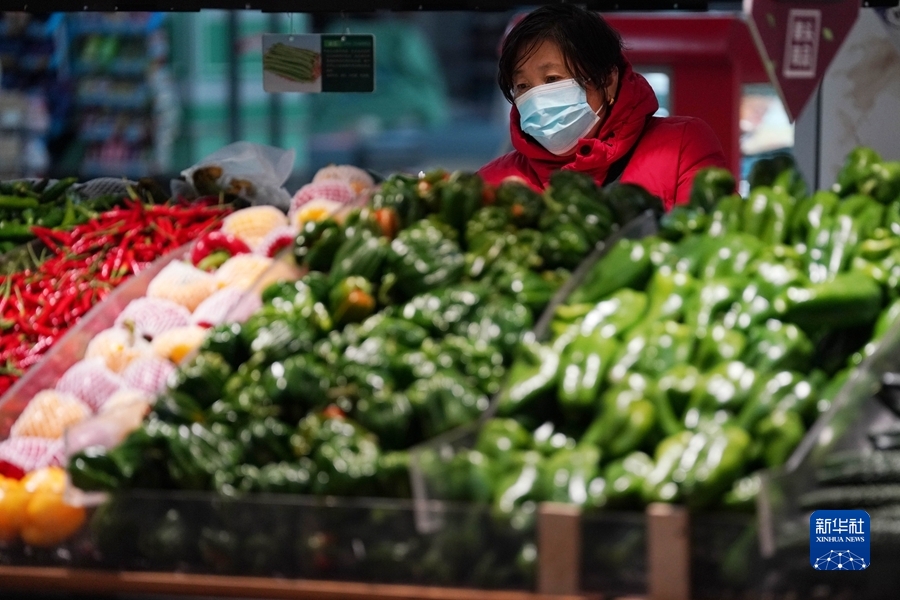 资料图片:11月10日,在哈尔滨市香坊区一大型超市的蔬果区,市民在选购蔬菜。 新华社记者 王建威 摄