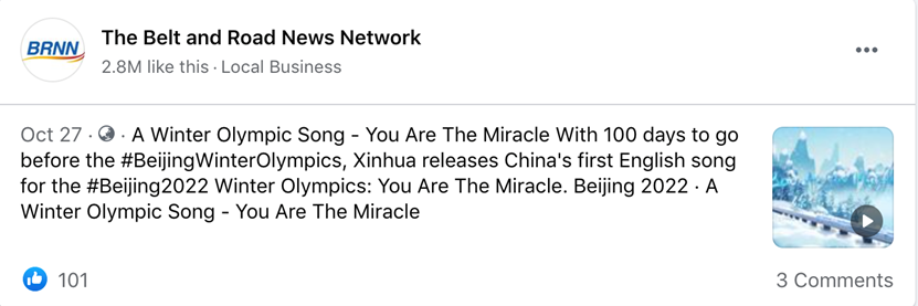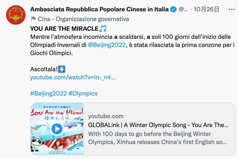 举世瞩目的2022年北京冬奥会还有两个多月就开幕了。一首由国社原创,奥运冠军杨扬、丁宁、林跃领衔演唱的迎冬奥英文MV《你就是奇迹(You Are the Miracle)》在海内外网络迅速走红,发布一个月以来,在各社交媒体平台热度颇高,受到大量海外网友的喜爱,在优兔、脸谱、推特等海外社交平台获得广泛关注,浏览量超千万次。北京冬奥组委第一时间在海外官方账号转发,海外网友留言表示“终于等到了!”