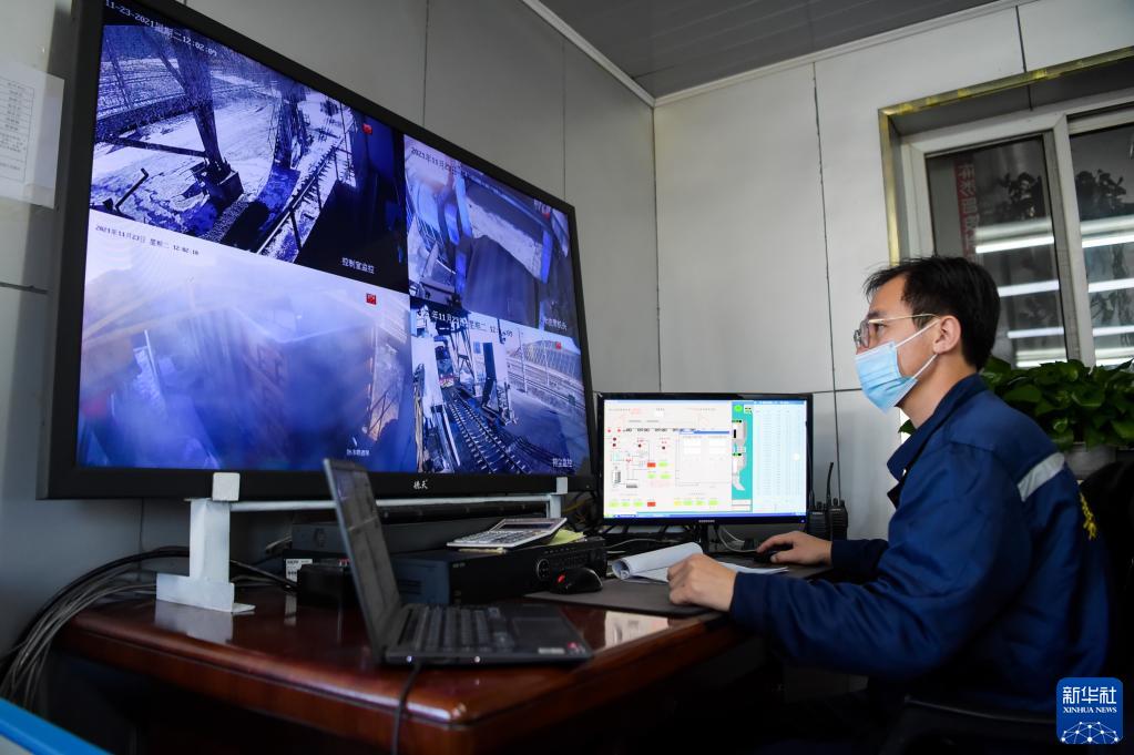 11月23日,在位于鄂尔多斯市的淮河能源西部煤电集团色连二矿罕台川集装站,工作人员在监控装煤设备运行情况。新华社记者 李志鹏 摄