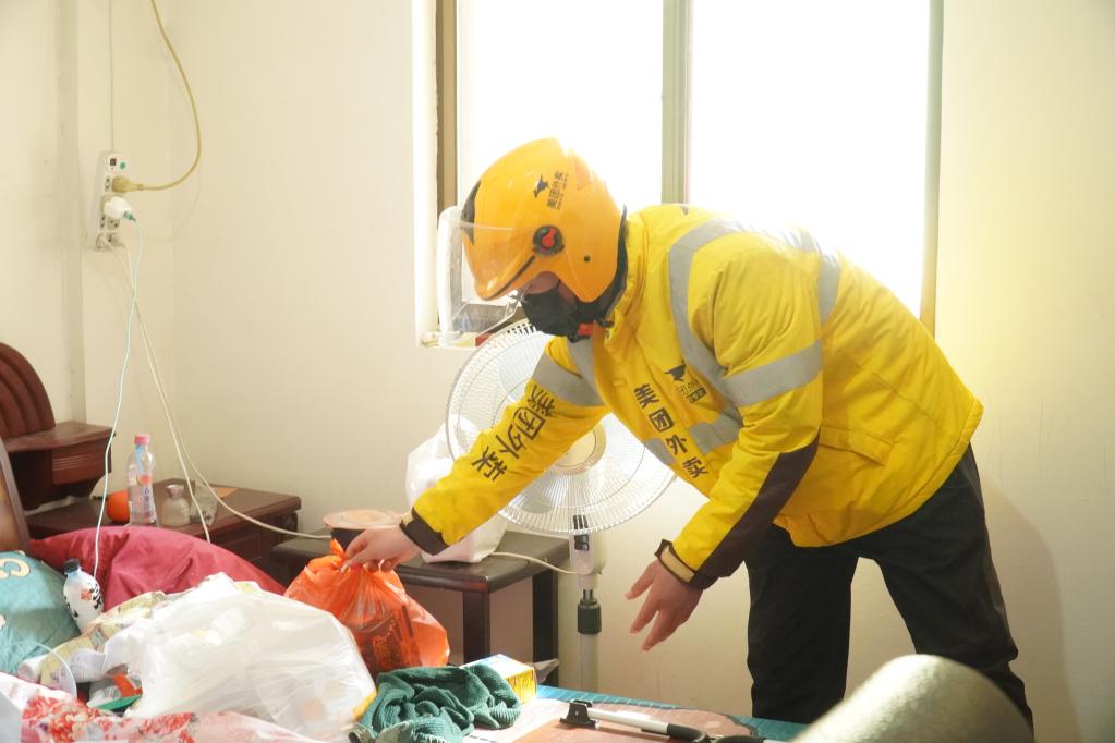 叶阳辉在给计女士送餐。新华社记者唐弢摄