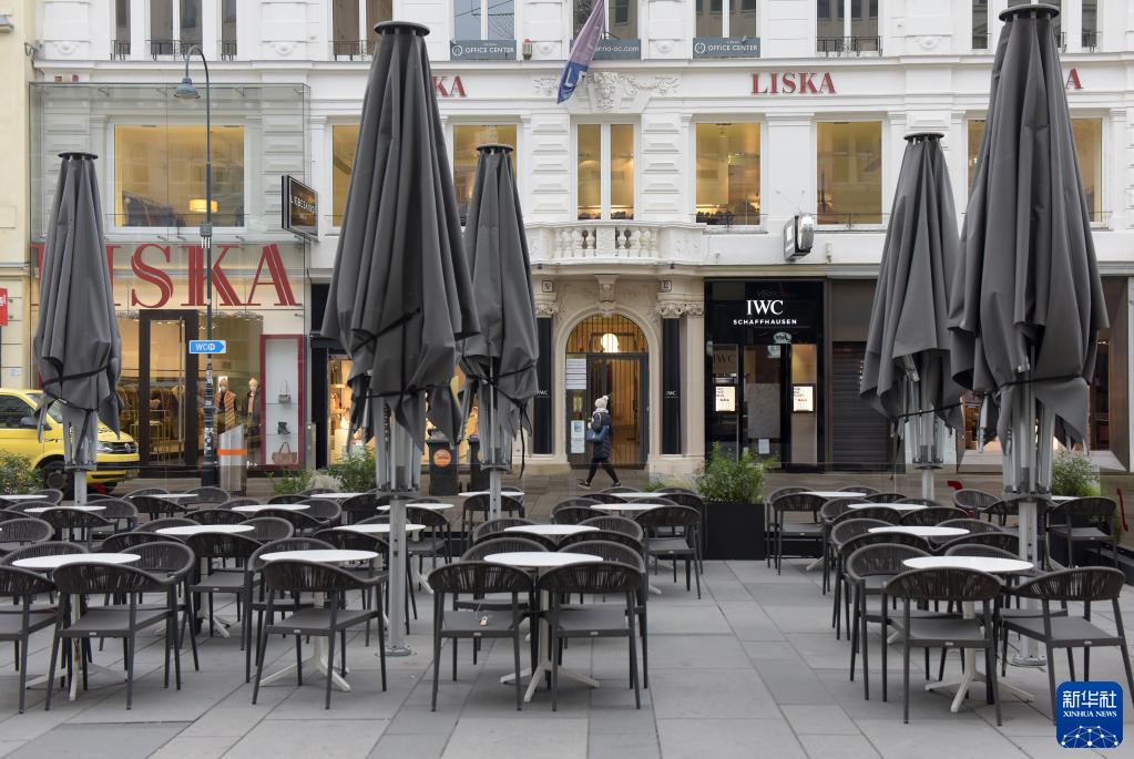 这是11月22日在奥地利首都维也纳拍摄的一条商业步行街上关闭的咖啡馆。(新华社记者 郭晨 摄)