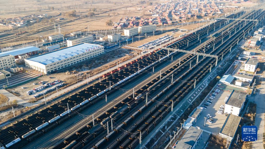 11月23日,运煤列车在呼和浩特南站整装待发(无人机照片)。新华社发(纪恩泉 摄)