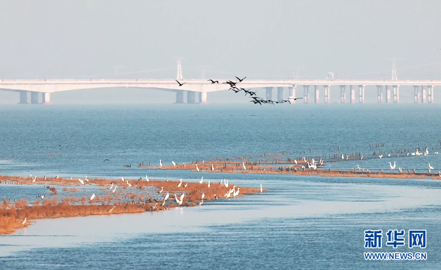 初冬时节,大批珍贵鸟类在素有“天空之镜”之称的马鞍山市博望区石臼湖西岸驻足、栖息。