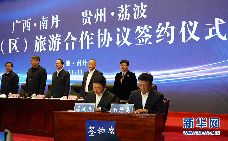 在11月16日召开的2021年河池市旅游发展大会上,南丹县与贵州荔波县签署了《南丹·荔波跨省(区)旅游合作协议》,两地将联创共建,实现景区直通、门票互免,合作创建全国有名的跨省(区)旅游黄金廊道和精品路线。