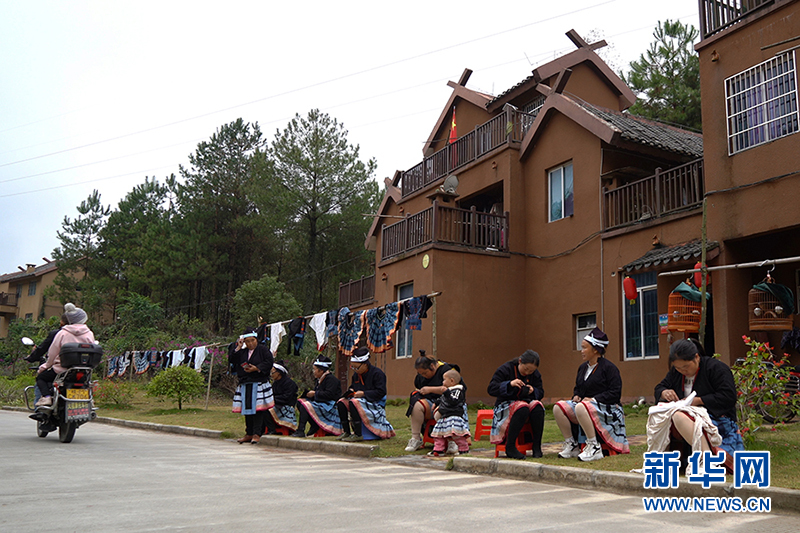 白裤瑶妇女在制作瑶族服饰。新华网 刘君 摄