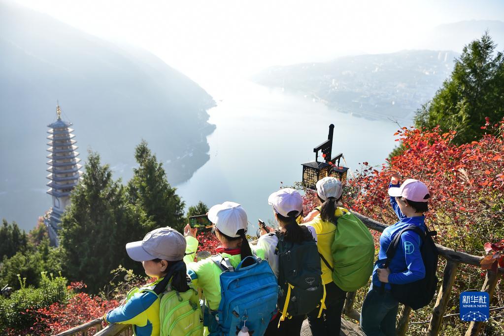 初冬时节,位于重庆市巫山县境内的长江巫峡一带进入红叶最佳观赏期,吸引游客前来观赏、游览。