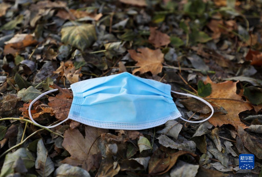 11月25日,在英国伦敦,一只口罩被丢弃在地上。新华社记者 李颖 摄