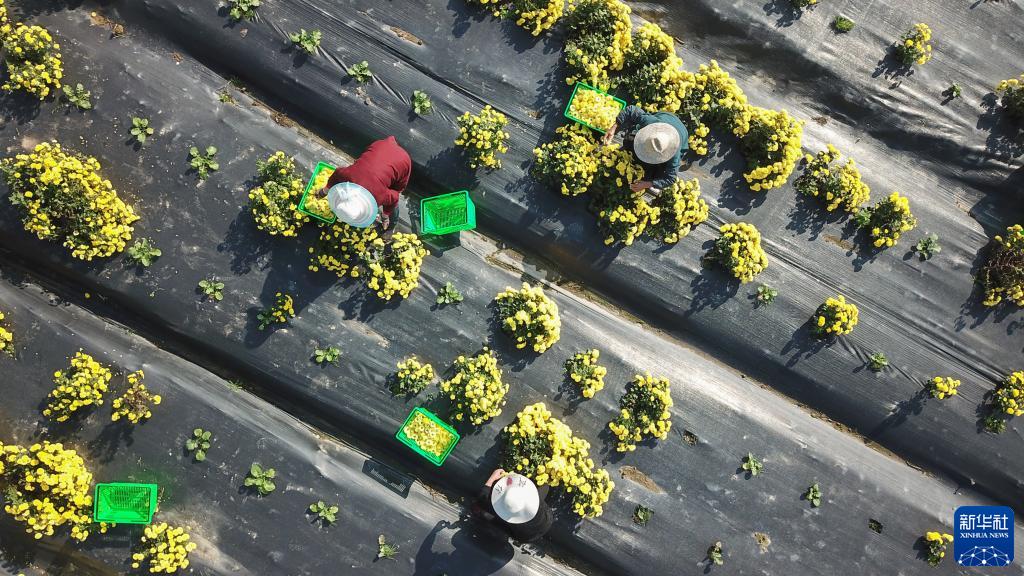 连日来,趁着天气晴好,湖南省长沙市望城区靖港镇福塘村的村民忙着采收皇菊。近年来,湖南省长沙市望城区靖港镇福塘村结合当地土壤、气候等特点,以“企业+合作社+农户”的方式,发展观赏性强、经济价值高的皇菊种植,形成种植、观赏、加工、销售一体化的产业链条,带动村民增收,推动当地农旅融合发展。