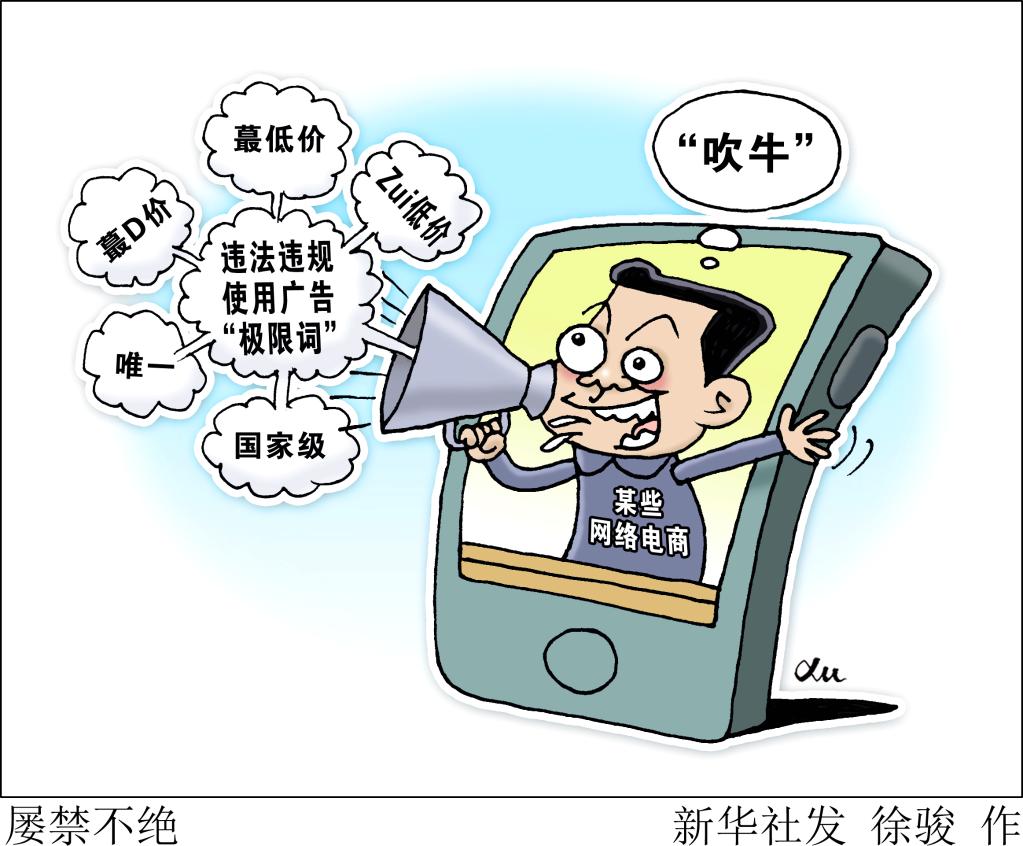 新华社记者采访发现,部分网络平台上违规违法使用“极限词”广告的情况仍多,不仅严重侵害消费者合法权益,同时也导致不法分子藉“商家广告词违法”进行敲诈勒索一类案件频发,亟需加强监管治理。