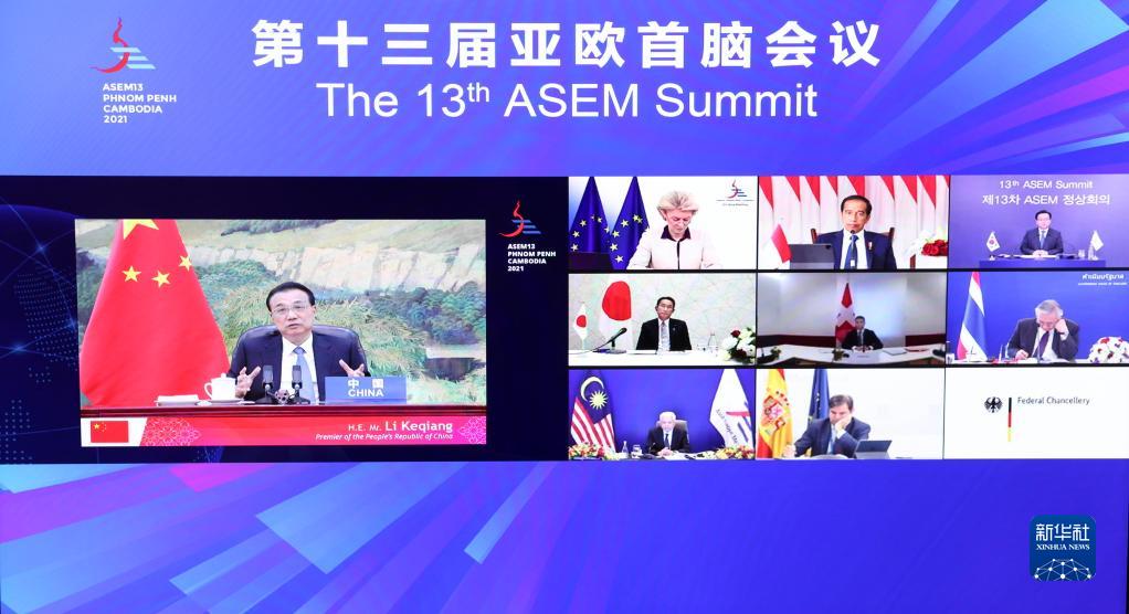 李克强表示,亚欧会议是亚欧之间规模最大的政府间论坛,53个成员人口占世界总人口近六成,经济总量占世界一半,贸易总量接近全球七成,在国际政治经济版图上有着重要影响。习近平主席提出,要在亚欧大陆架起一座友谊与合作之桥。当前亚欧国家共同面临应对疫情挑战和推动经济复苏的重要议题,既要有战胜困难的信心和勇气,也要坚持团结合作这一正确的途径和办法。要坚持自由贸易,保持全球产业链供应链稳定畅通。区域全面经济伙伴关系协定(RCEP)明年如期生效实施,将为地区经济复苏提供新的动力。