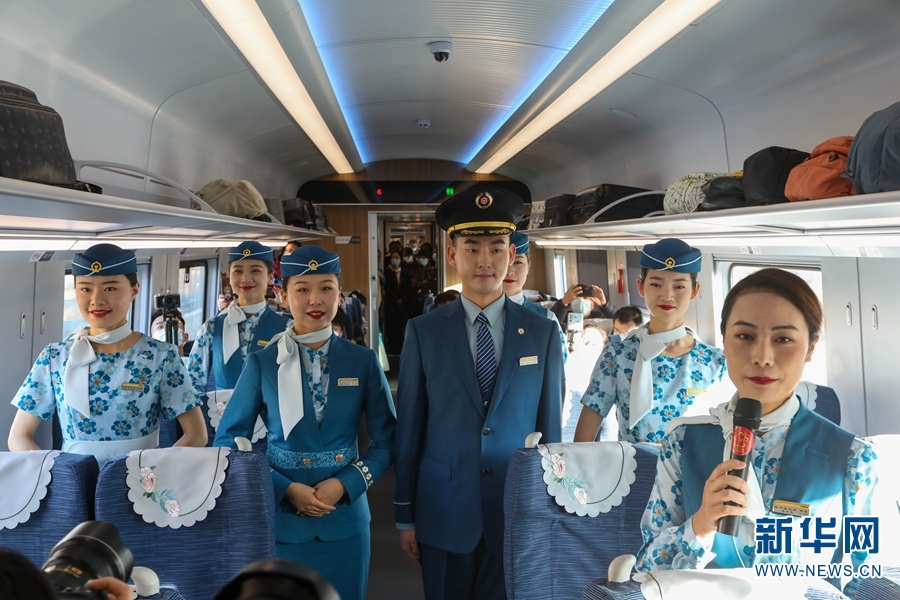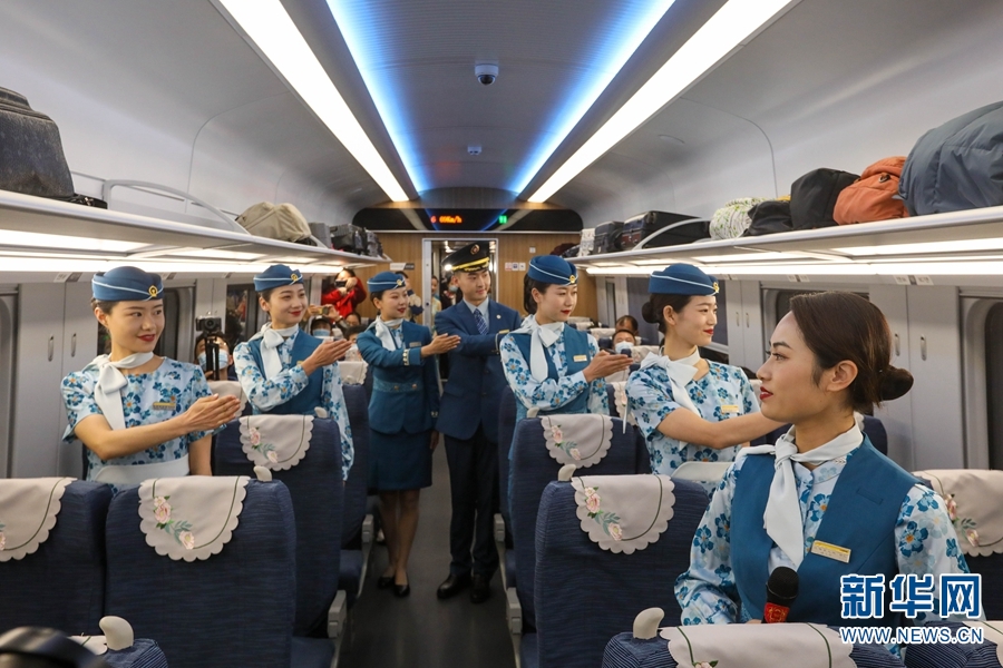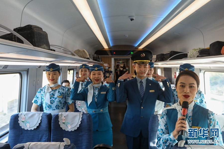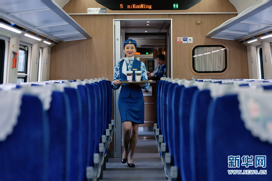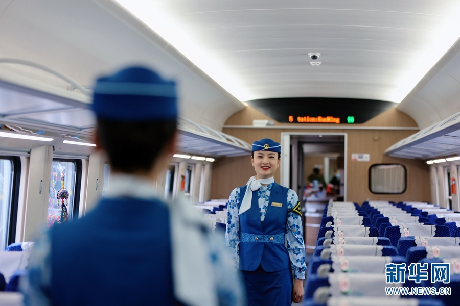 乘务员展示新款制服(资料图)。新华网发(中国铁路昆明局集团有限公司 供图)
