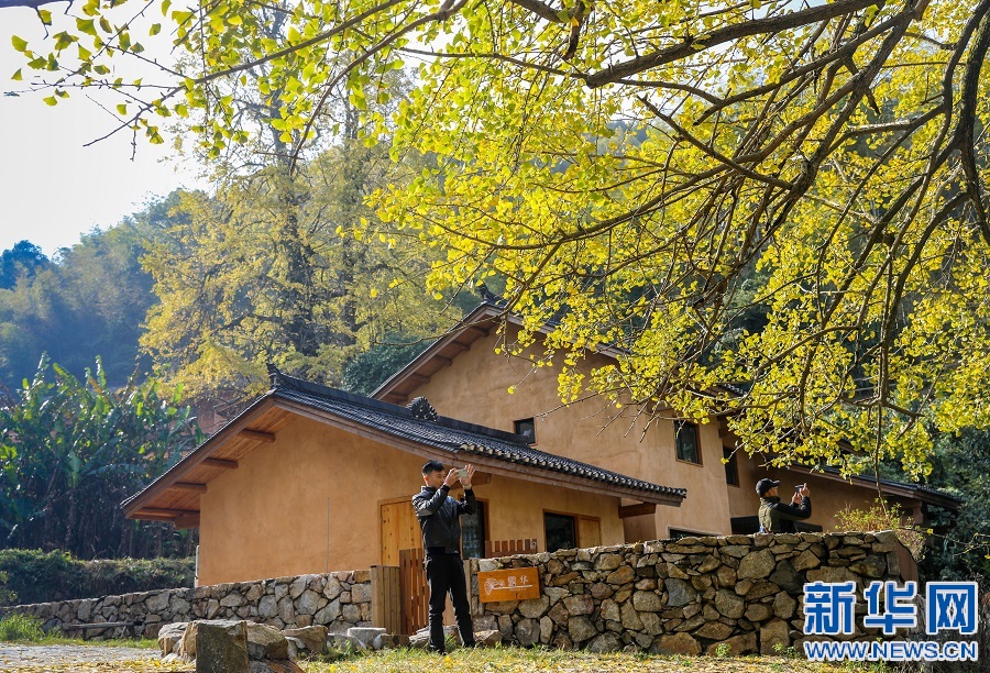 村居掩映在银杏叶之中。 新华网发 邹进 摄
