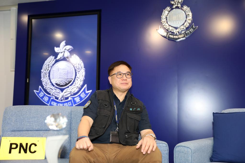 警察谈判组主管黄广兴总警司在接受新华社记者专访(11月9日摄)。新华社记者 吴晓初 摄