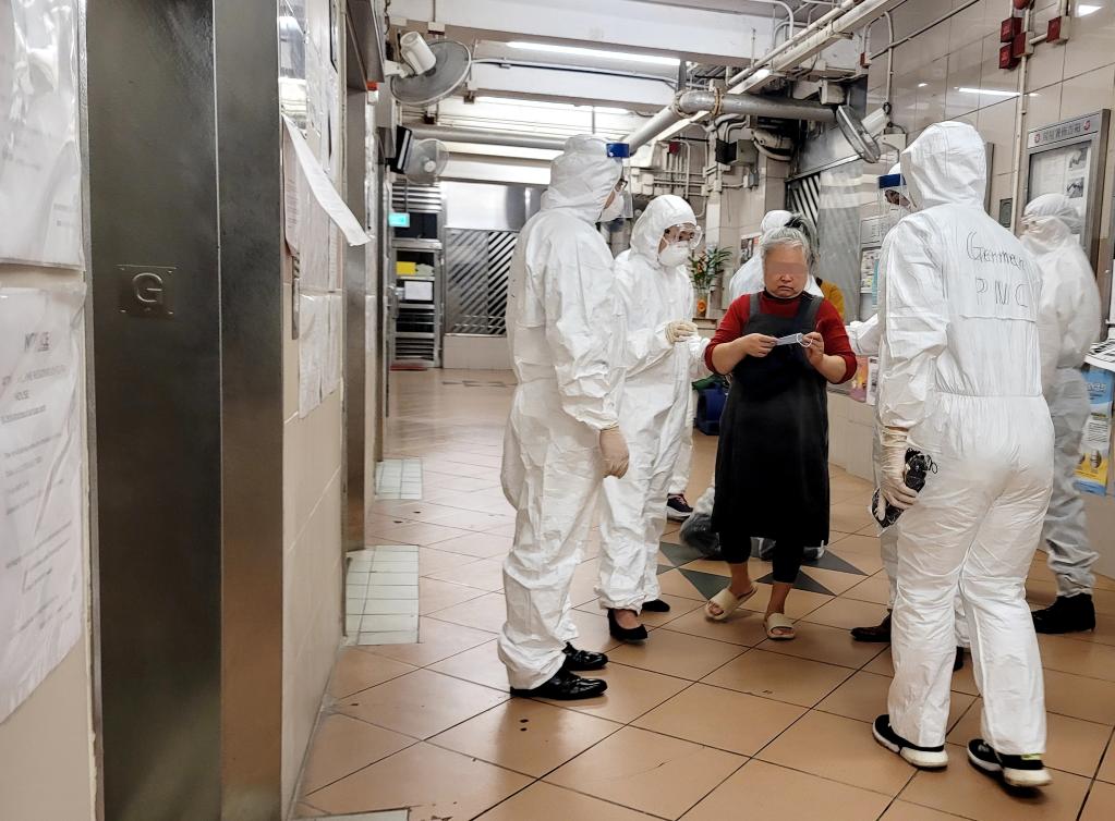 2021年4月14日,经过警察谈判专家反复解释沟通,一位曾接触新冠肺炎病毒感染者的居民最终表示愿意配合并接受强制隔离。新华社发(香港警方供图)
