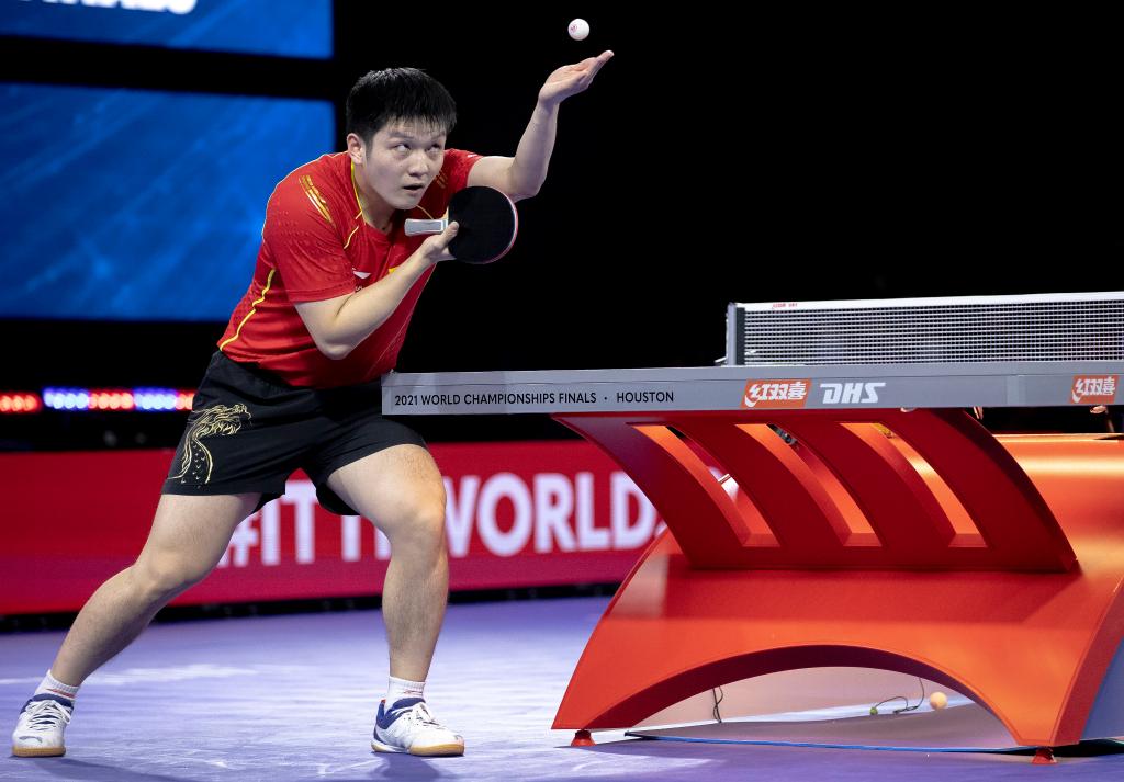 11月27日,樊振东在比赛中发球。新华社发(瓦格纳摄)