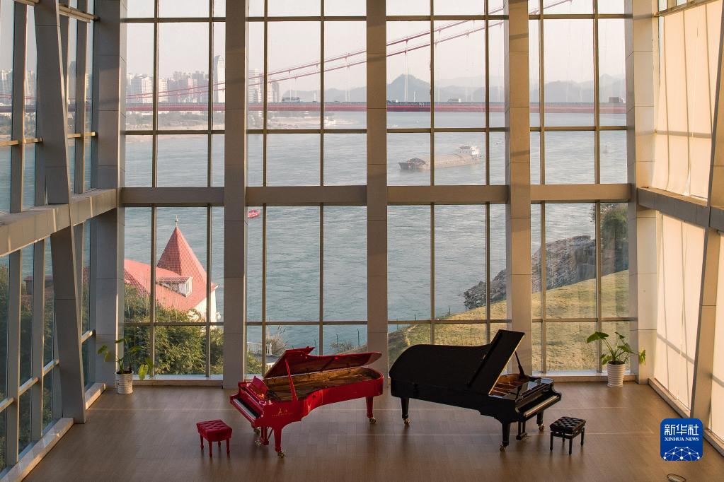 11月23日,两台钢琴在柏斯音乐集团宜昌钢琴生产基地展示。