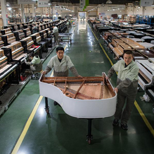 钢琴的生产是精细活。在这里, 2000多名工人紧张地忙碌着,切割、打磨、调律……在他们的组装下,一架架钢琴诞生了,并由此走向全世界。