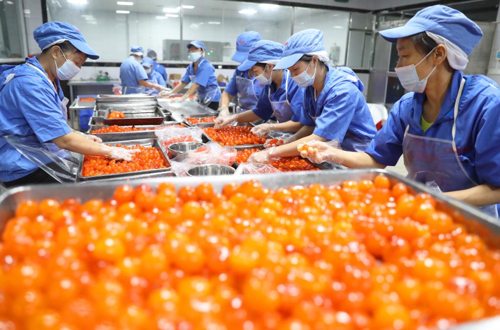 李花村的咸蛋黄加工车间。曹正平 摄