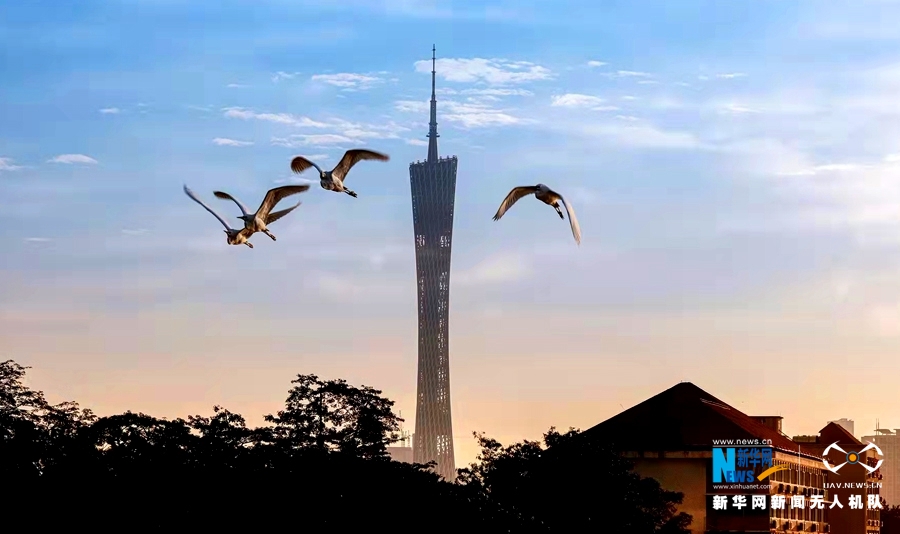 初冬时节,在广州珠江两岸,不时出现鸟儿展翼飞舞的画面。新华网发(黄巧珠摄)