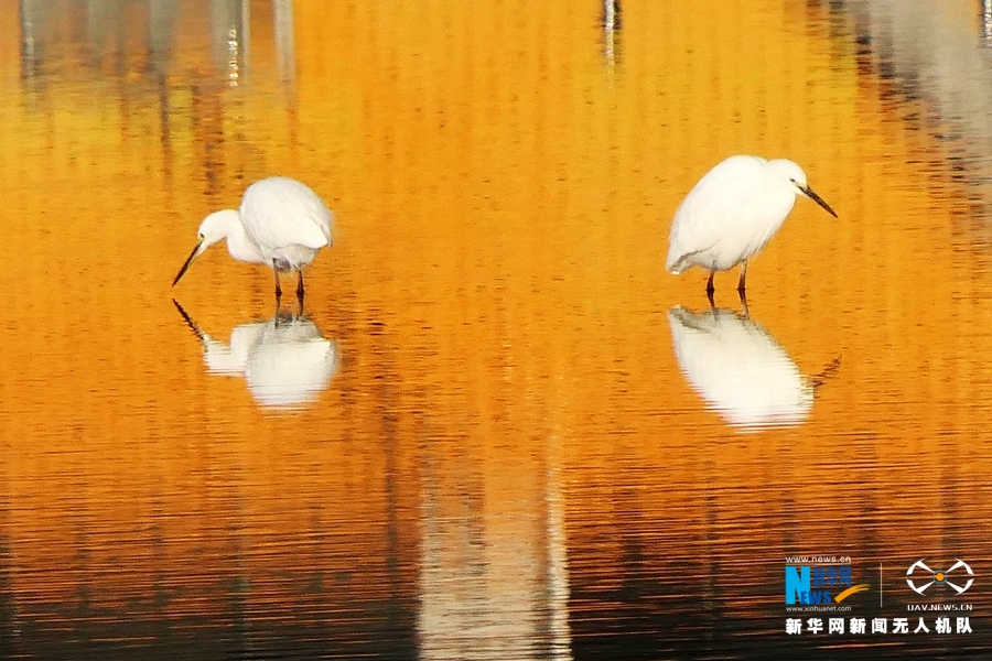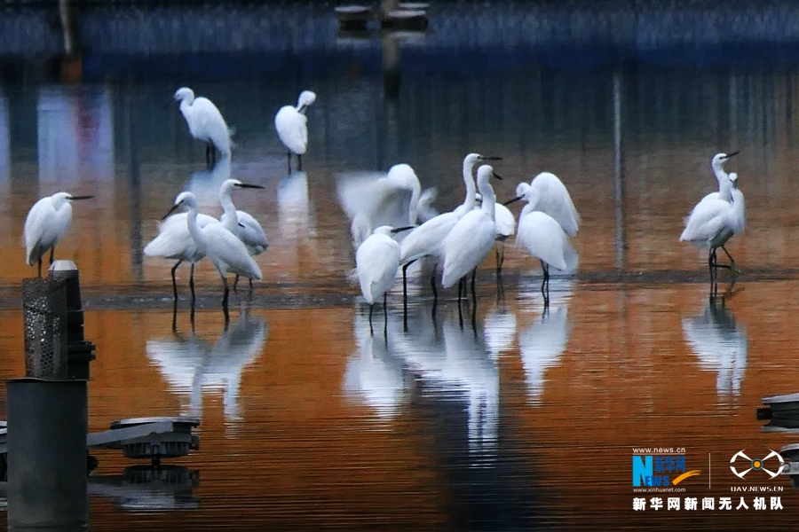 白鹭悠然自在地在水间嬉戏。新华网发(佘建新摄)