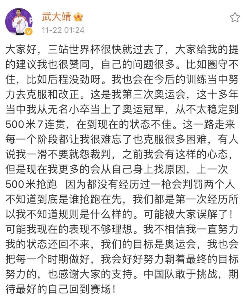 武大靖诚恳接受建议
