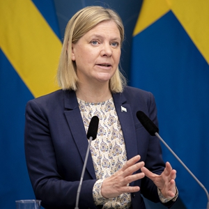这是玛格达莱娜·安德松在瑞典斯德哥尔摩出席新闻发布会的资料照片(4月29日摄)。新华社发(瑞典政府供图/宁尼·安德松摄)