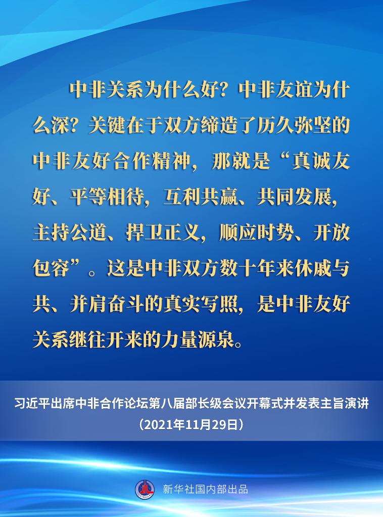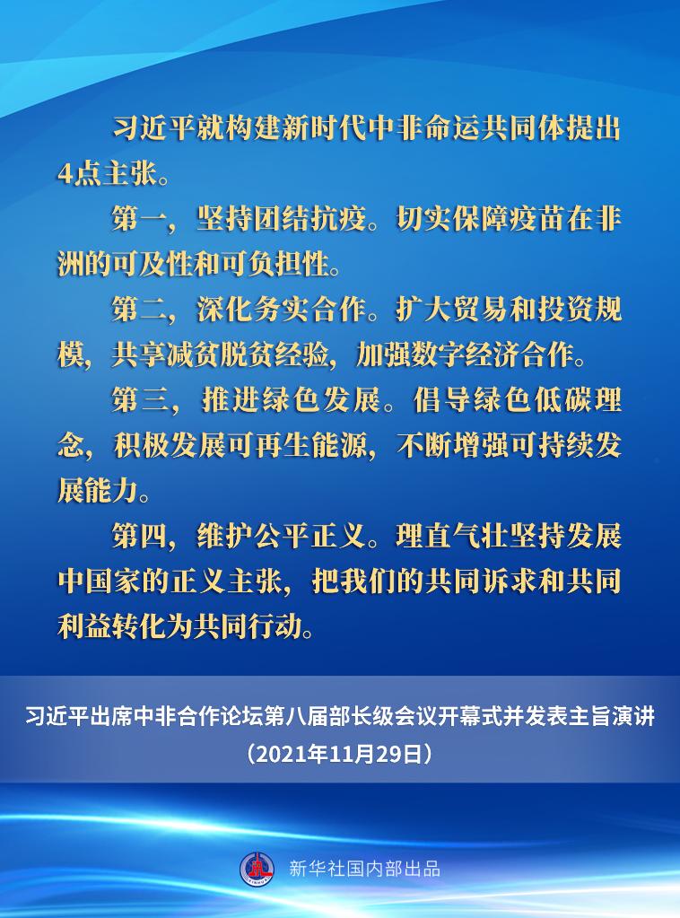 11月29日晚,国家主席习近平在北京以视频方式出席中非合作论坛第八届部长级会议开幕式并发表主旨演讲。一起来看要点。