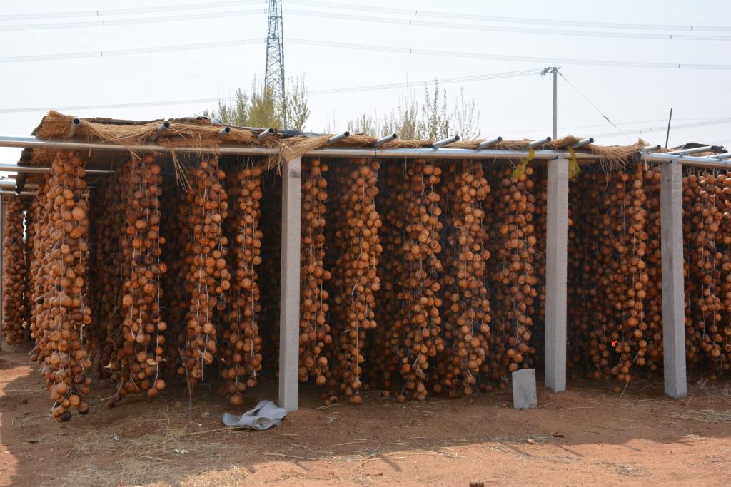 河北灵寿县种植的中药材瓜蒌正在晾晒。(李学彦 摄)