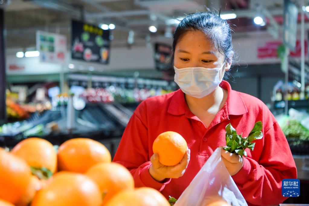 11月30日,在满洲里市庆客隆超市,工作人员在拣货。满洲里市居民可通过线上方式下单,工作人员根据订单拣货后由配送人员送货。