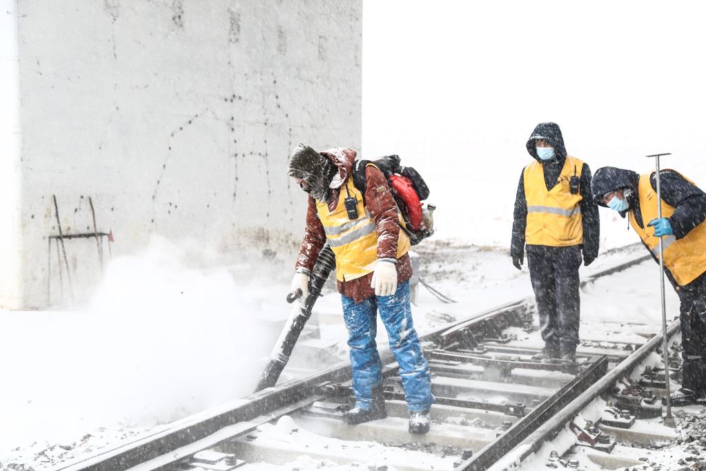 张凤海在铁路部门工作多年,他告诉记者,这样的极端天气对铁路部门的挑战很大,在本轮降雪过程中,铁路部门成立12个除雪组,出动620余人次,组成党员骨干除雪突击队,对全站的220组道岔、100余条线路等设备,以及客运站台、进出站通道等处进行除雪清冰。
