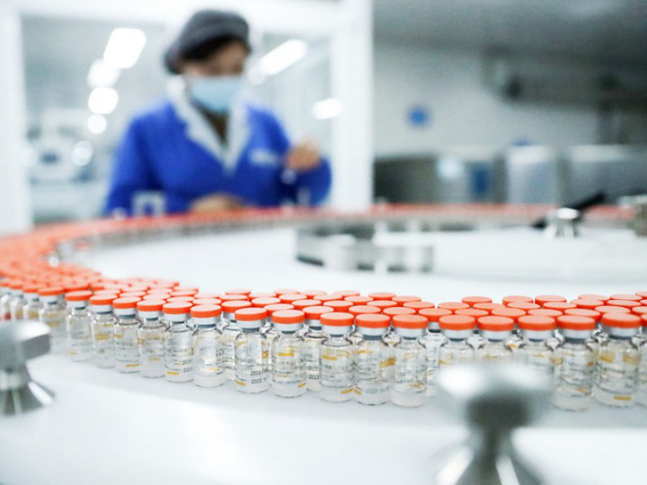 今年1月,科兴中维的工作人员检查新冠病毒灭活疫苗标签。新华社记者张玉薇 摄