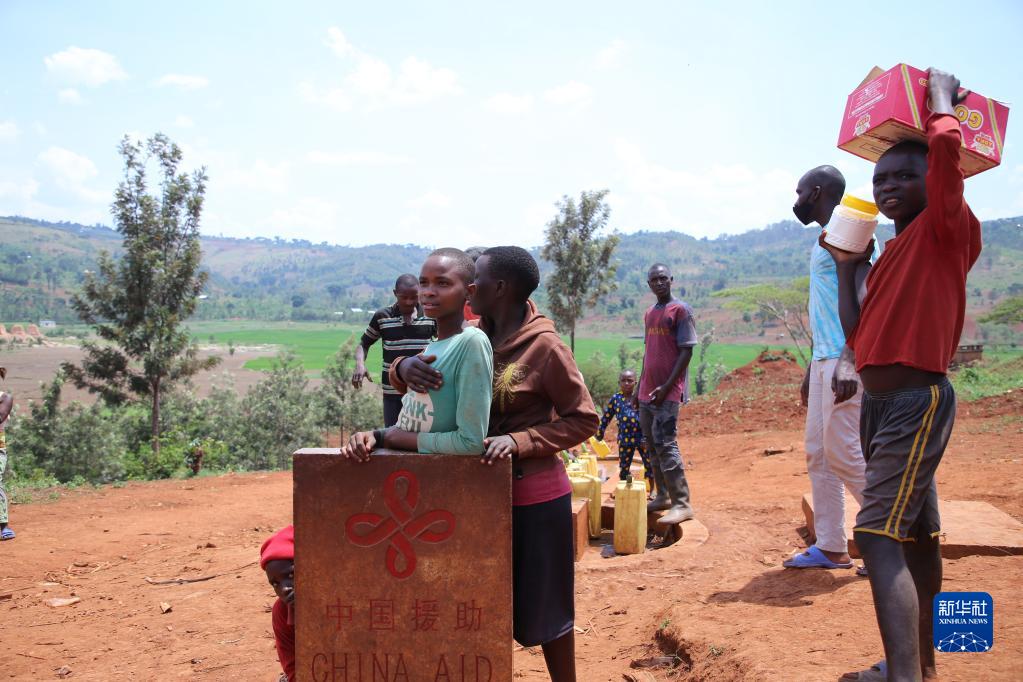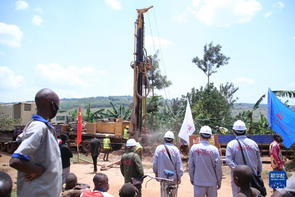 在卢旺达东方省恩戈马地区的卢加拉马村,一面用中英文印有“中国援助”的旗帜在中国政府援助卢旺达水井项目的施工现场迎风飘扬。轰隆声声响,一台大型钻机正在打井,不少村民好奇地看着钻头不断下探,像是大型挖宝现场,所有人都期待着从喷溅出的泥沙中能够探出“宝”来。