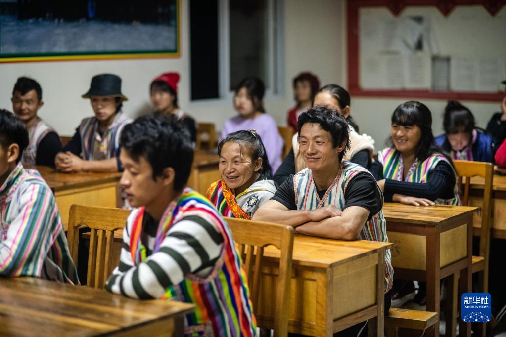 在云南省贡山独龙族怒族自治县独龙江乡孔当村,独龙族群众在上夜校(2020年10月28日摄)。新华社记者 胡超 摄