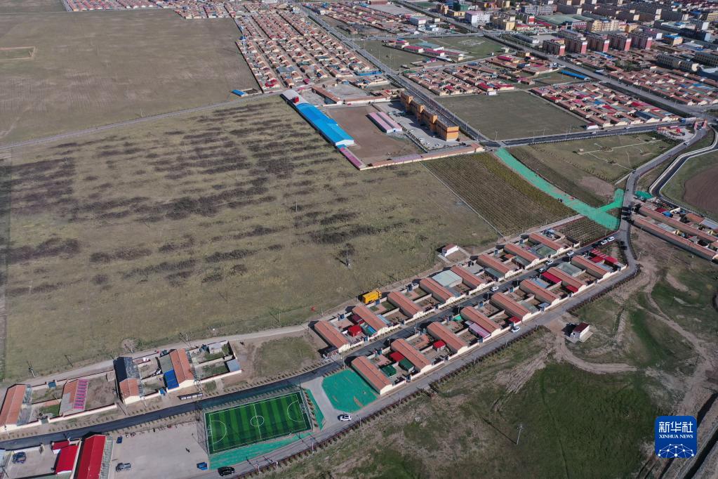 这是2021年6月8日拍摄的青海省海北藏族自治州刚察县果洛藏贡麻村(无人机照片)。新华社记者 吴刚 摄