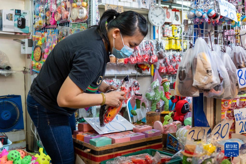 11月16日,纪淑练在泰国廊开的店铺内整理商品。新华社记者 林昊 摄