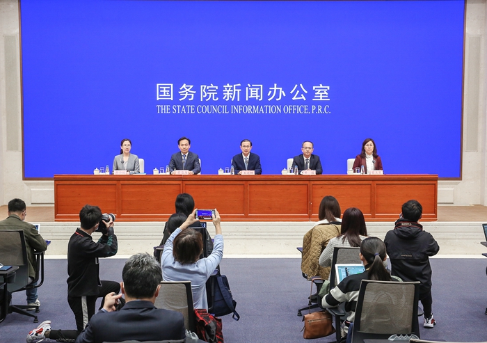 11月5日,国新办举行制造业中小微企业缓税政策国务院政策例行吹风会。新华社发(赵一帆摄)