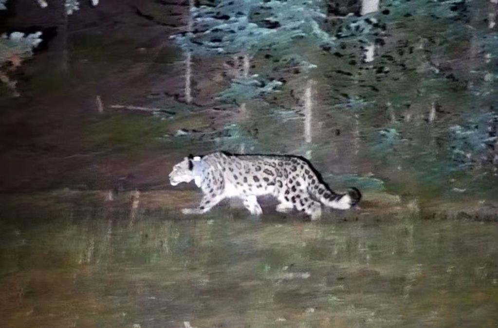 9月22日,刚刚放归贺兰山内蒙古段哈拉乌北沟林区的雪豹。(受访单位供图)