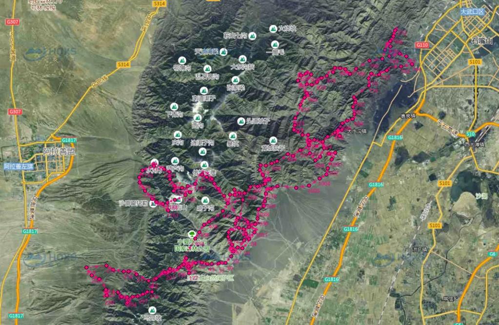 2个多月来,放归雪豹在贺兰山中的活动轨迹。(受访单位供图)