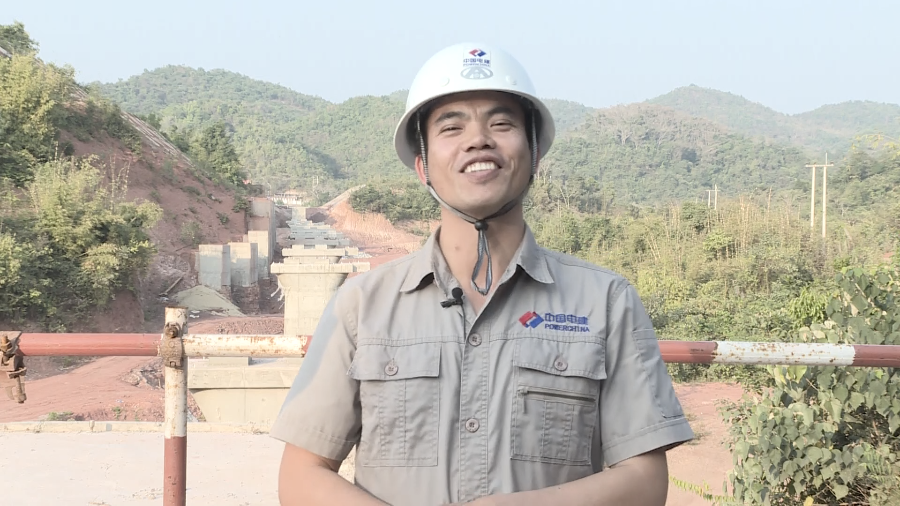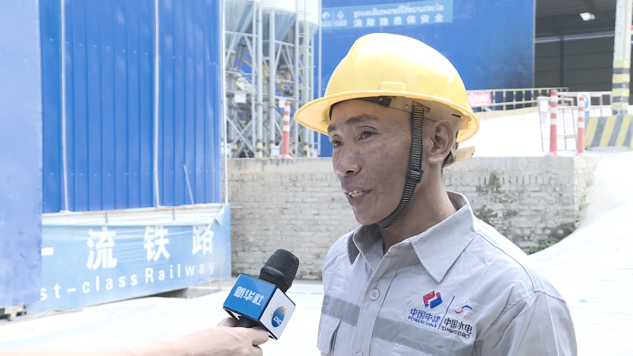 中老铁路建设工人坎皮乌·达瓦接受采访。