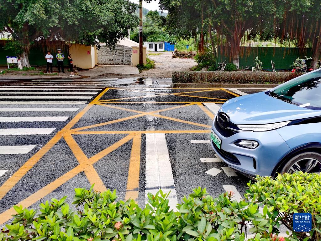 图为广西梧州市龙圩区恩义小学门前的“阶梯式”停止线。(梧州市公安局交警支队供图)