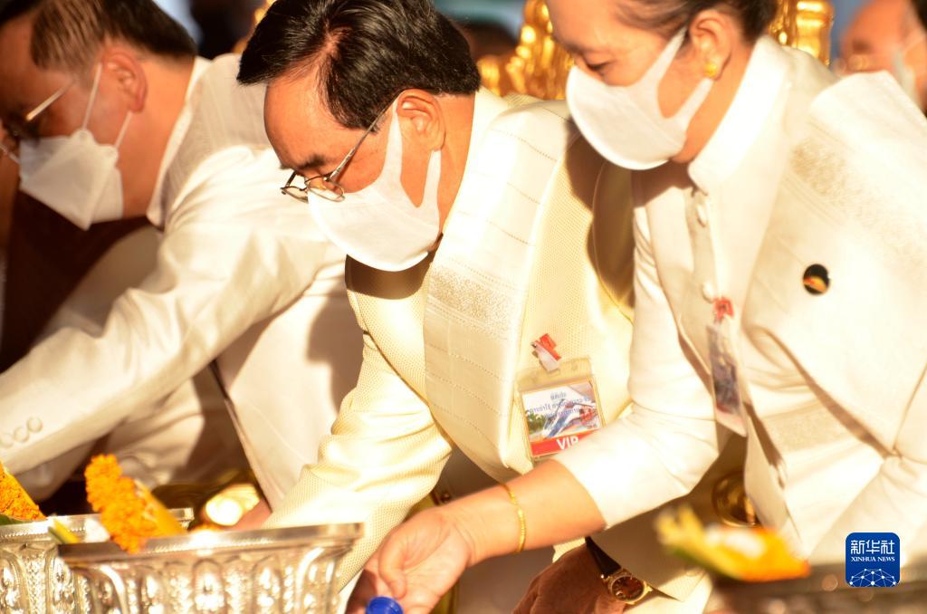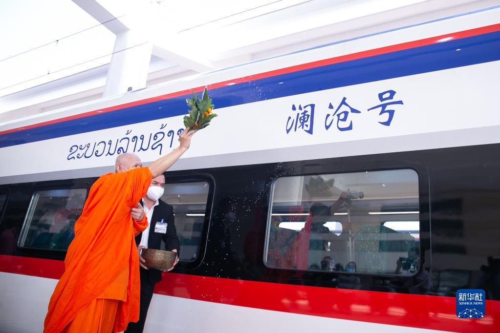 当天,老挝总理潘坎、国家副主席巴妮和本通、副总理宋赛等老挝党和国家领导人同民众一起,到中老铁路万象车站参加老挝传统仪式,为中老铁路祈福。