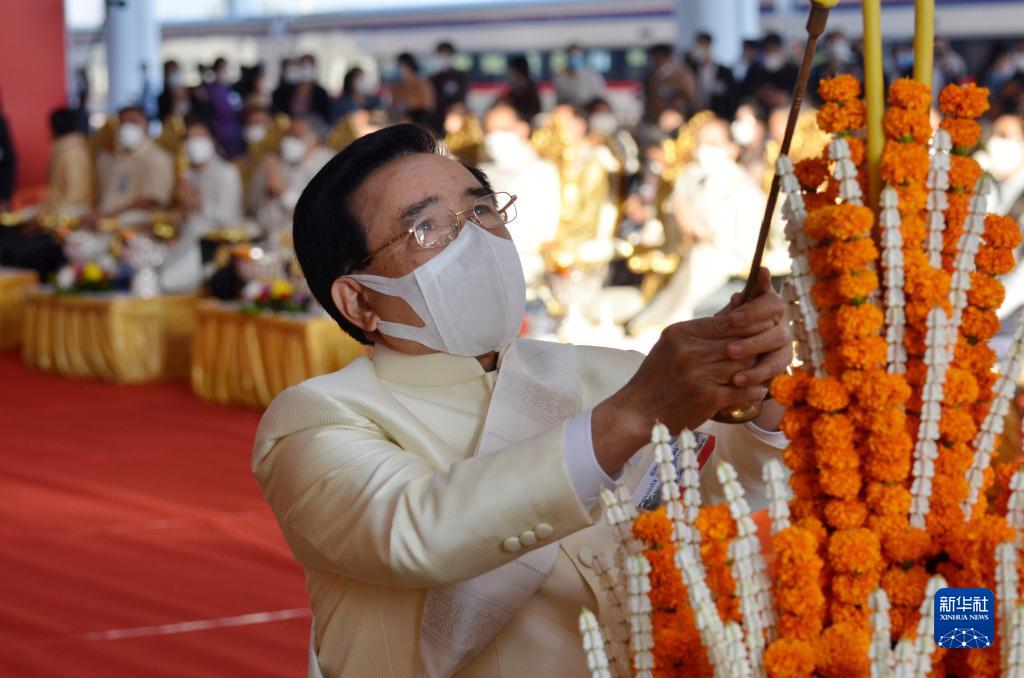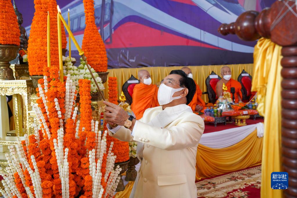 12月2日,老挝总理潘坎在中老铁路万象车站为中老铁路祈福。新华社记者 章建华 摄