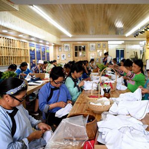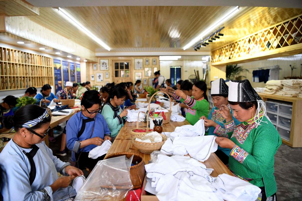 2020年5月20日,少数民族妇女在贵州省榕江县卧龙易地扶贫搬迁安置小区千匠百艺扶贫车间就业。新华社发(王炳真摄)