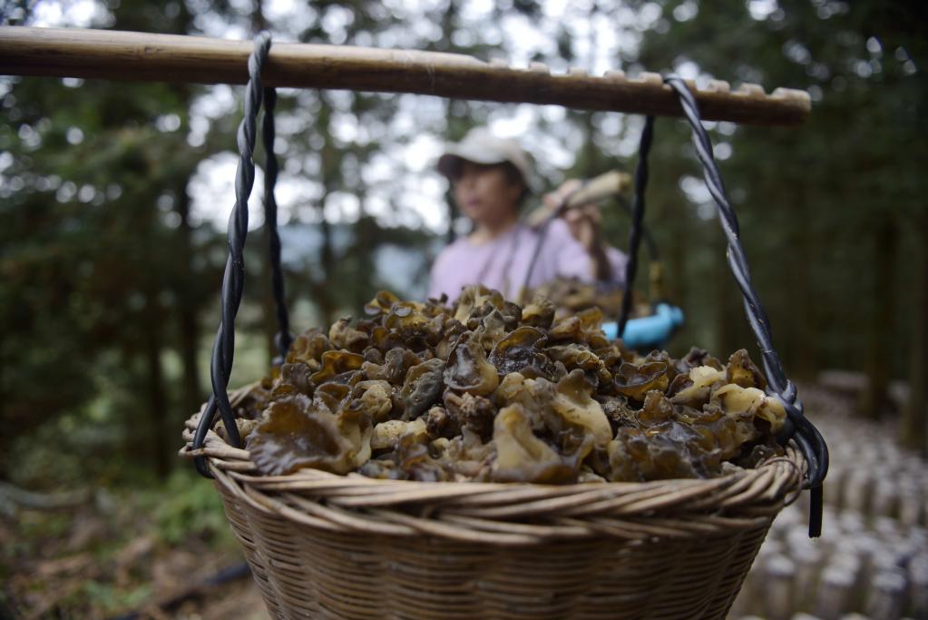 2020年3月6日,村民在贵州省从江县西山镇卡翁村黑木耳基地搬运采摘的黑木耳。新华社发(吴德军摄)