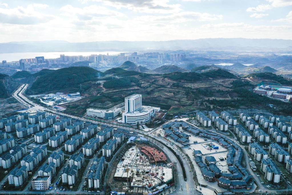这是贵州省威宁县五里岗街道朝阳新城和阳光新城易地扶贫搬迁安置小区(11月28日摄,无人机照片)。新华社记者杨文斌摄