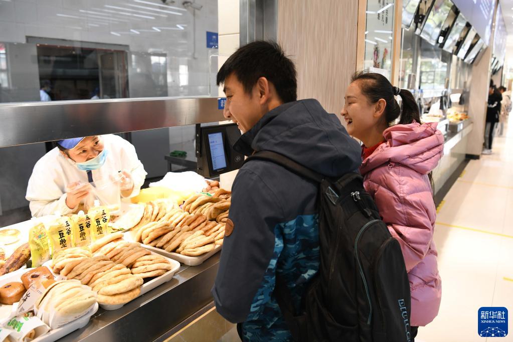 12月2日,在安庆师范大学,唐闻泽和张晨在买早餐。