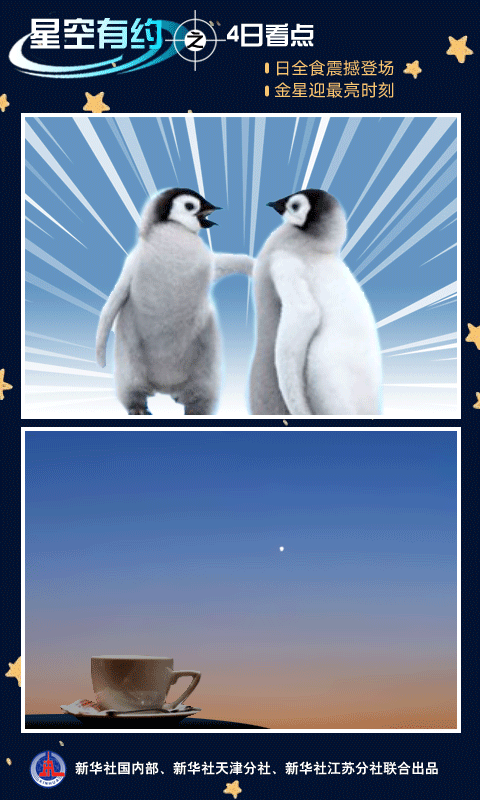 新华社天津12月3日电(记者周润健、邱冰清、朱筱)天文科普专家介绍,12月4日的天宇将很热闹,既有震撼的日全食,也有迎来最亮时刻的金星。