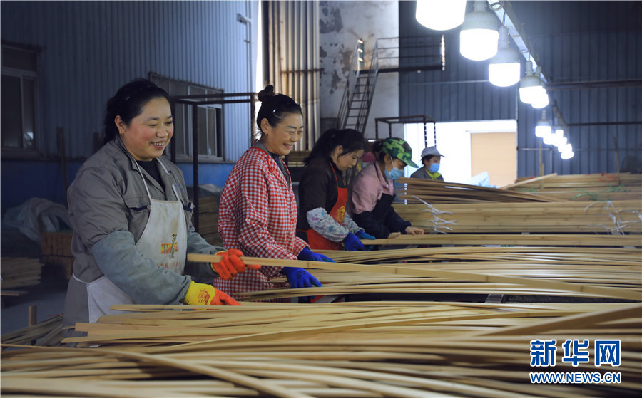 12月2日,贵州新锦竹木制品有限公司的工人们将碳化好的竹片根据颜色分类。新华网 卢志佳 摄